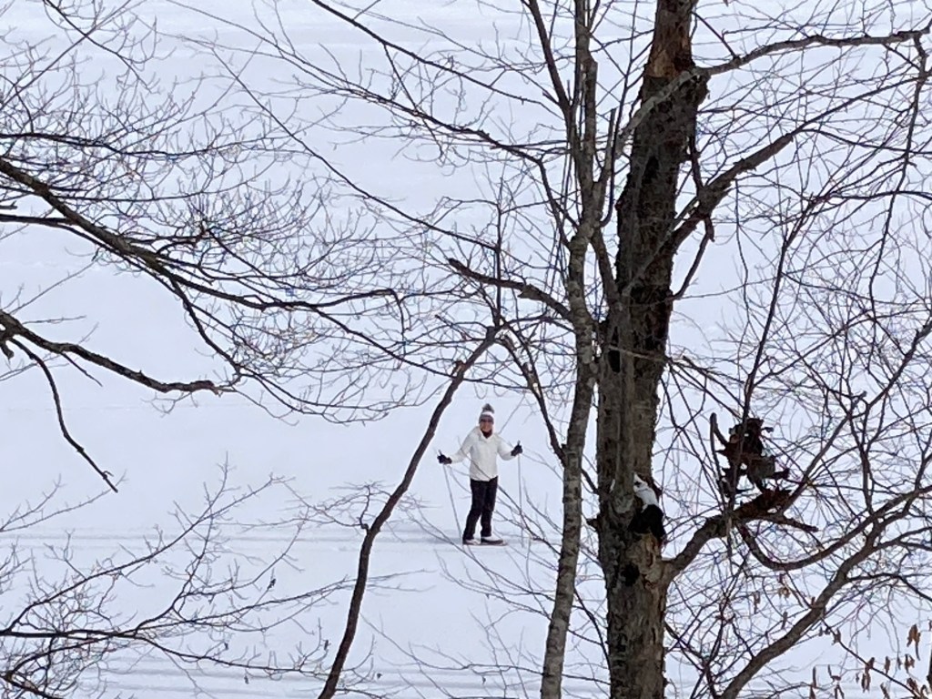 Depending on our mood we enter other lives like we enter the woods. We walk until there is an obstacle. I have often tossed a branch off into the woods only to have it hit a tree and come right back to me. Or carefully lifting and moving fallen branches or walking deep into the woods with a long branch dragging the leafy top behind me. Neatly Cutting, clipping, and sawing fallen limbs stacking them along the path for a creature or person to use. The black and white of the winter is framed by a tangle of branches, often glistening with ice or snow. On a hike a big glob of snow will fall on me as if thrown by a kid on the playground. It always makes me laugh, wet faced, and momentarily incensed. We step off the path and tangle with the woods and are glad for the branch that springs back and reminds us that we took a chance.